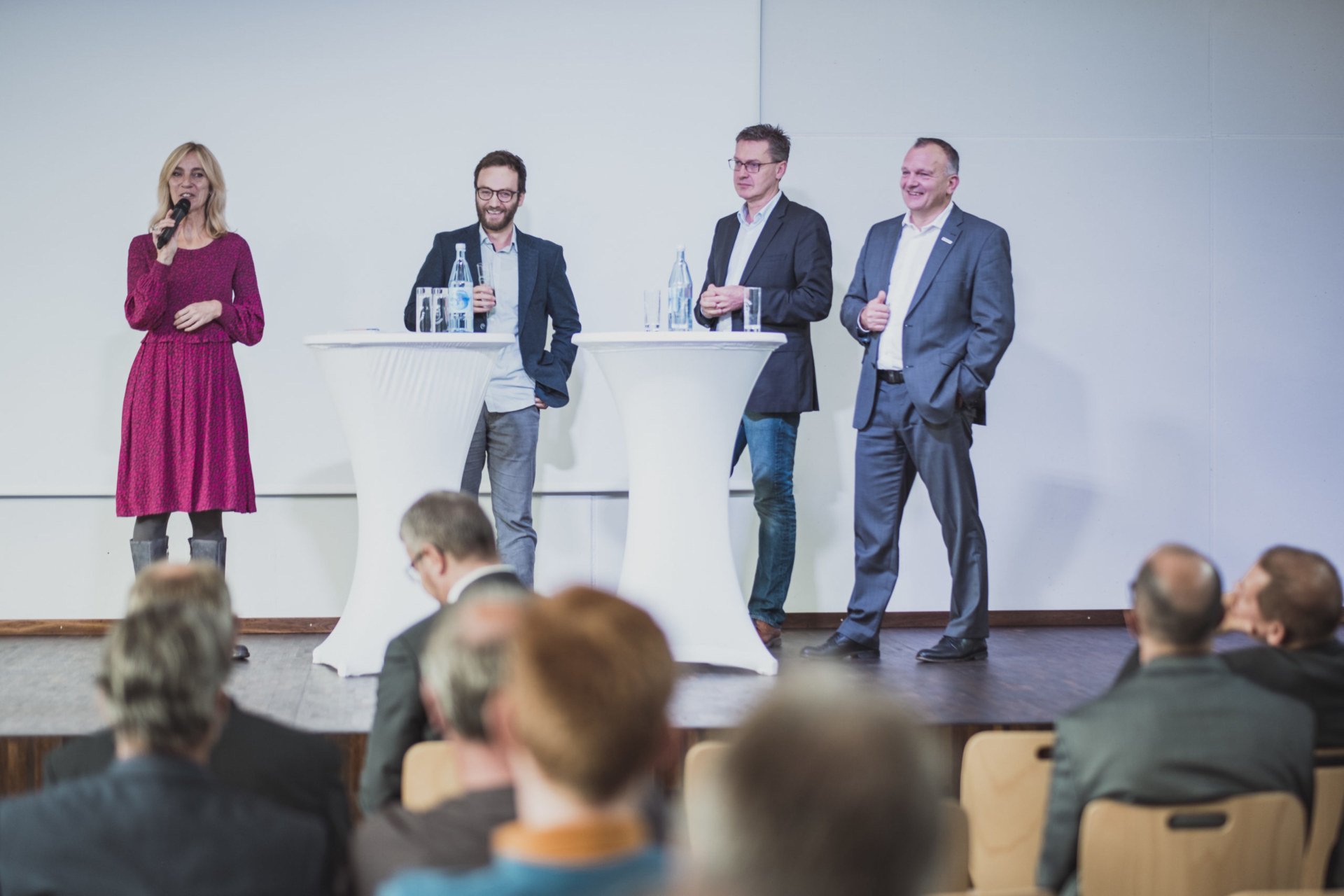 Prof. Dr. Dieter Wallach (Experte für Mensch-Computer Interaktion und Usability Engineering an der Hochschule Kaiserslautern Kaiserslautern und Sprecher des Innovationsbereichs Produkte) sowie René Chassein (Pfalzwerke AG) und Steffen Lutze (ITK Engineering GmbH) stellten die neuen Möglichkeiten dar, welche sich im Kontext der zunehmenden Digitalisierung für Unternehmen ergeben um Kommunikation und Zusammenarbeit zu gestalten.