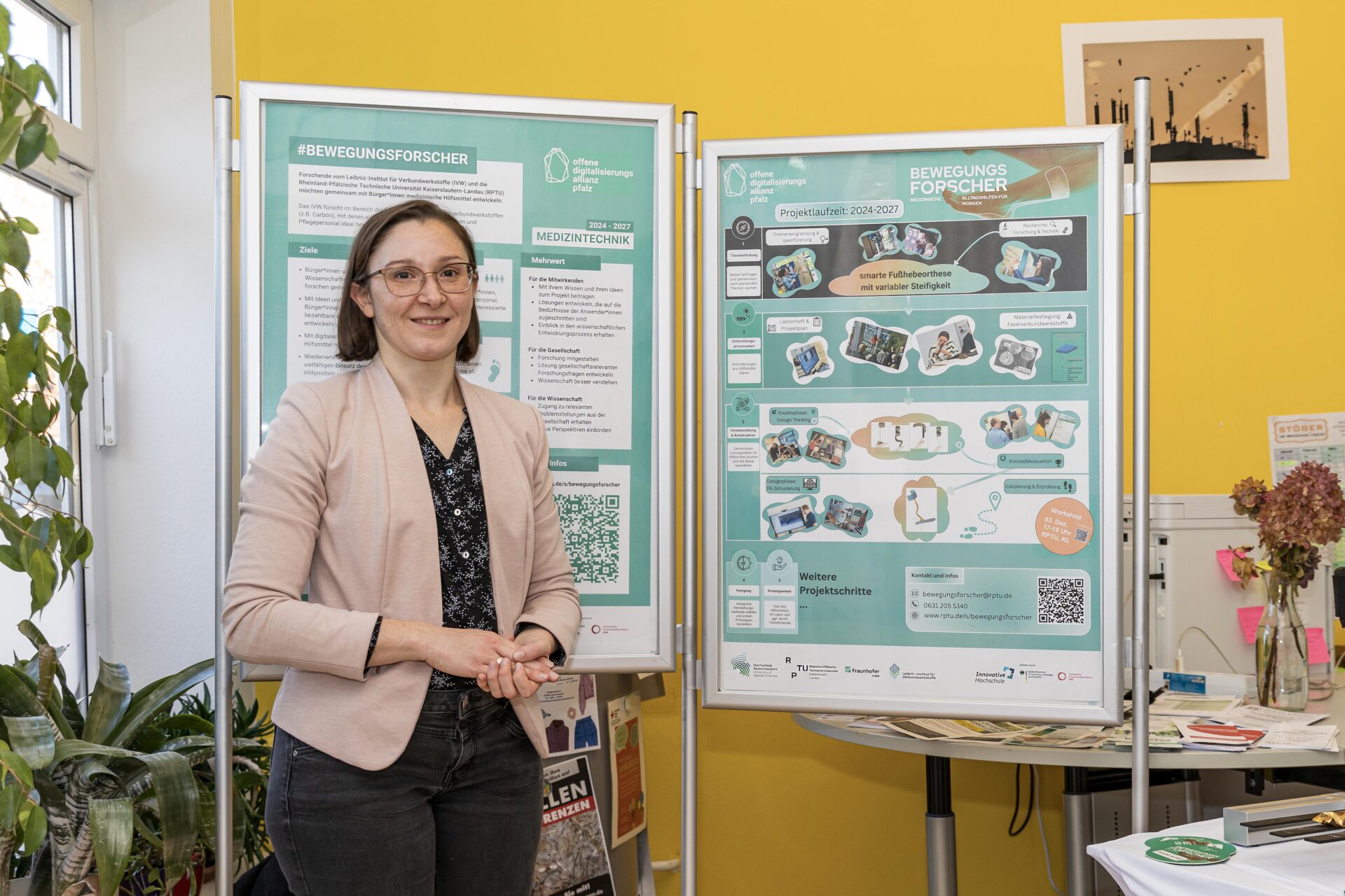 Das Projekt der BewegungsForscher fügte sich nahtlos in dieses Thema ein. Besucher*innen hatten die Gelegenheit, zu entdecken, wie Bürger*innen gemeinsam mit Wissenschaftler*innen an der Entwicklung einer innovativen Fußhebeorthese mit variabler Steifigkeit arbeiten – einem Hilfsmittel, das Menschen mit Fußhebeschwäche mehr Mobilität ermöglichen soll.