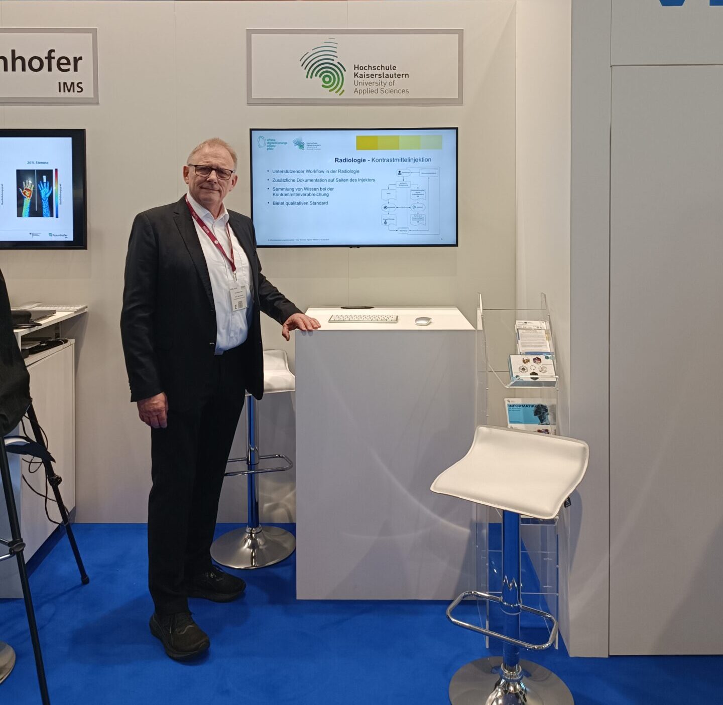 Ein weiterer Bestandteil der Teilnahme der Hochschule Kaiserslautern auf der DMEA war die Präsentation des DICOM Workflows IAASR (Imaging Agent Administration Structured Report). Dieser Workflow ist ein innovatives System zur Dokumentation von Kontrastmitteln, die in der Radiologie für Bildgebungsverfahren verwendet werden. In vielen radiologischen Verfahren werden Kontrastmittel eingesetzt, um die Bildqualität zu verbessern und präzisere Diagnosen zu ermöglichen. Der IAASR-Workflow automatisiert und optimiert die Dokumentation der Verabreichung dieser Kontrastmittel durch die Verwendung strukturierter Daten in den gängigen DICOM-Standardformaten. Dies erleichtert nicht nur die genaue Verfolgung und Verwaltung von Kontrastmittelverabreichungen, sondern trägt auch zur Verbesserung der Patientenversorgung bei, indem es Fehlerquellen reduziert und die Effizienz steigert.