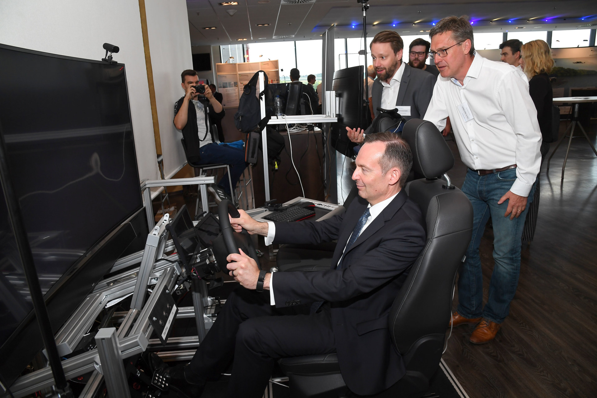 Im Rahmen der Veranstaltung „Autonomes Fahren – Lösungen & Kompetenzen der Fahrzeugindustrie in Rheinland-Pfalz“, der Plattform „We move it“, konnte Dr. Volker Wissing, Minister für Wirtschaft, Verkehr, Landwirtschaft und Weinbau in Rheinland Pfalz, am 17. Juni 2019 in Mainz im K3F Platz nehmen. Hier erfuhr er mehr über die Kompetenzen, welche für die Entwicklung innovativer Bedienkonzepte und autonomer Fahrassistenzsysteme an der Hochschule Kaiserslautern vorhanden sind.