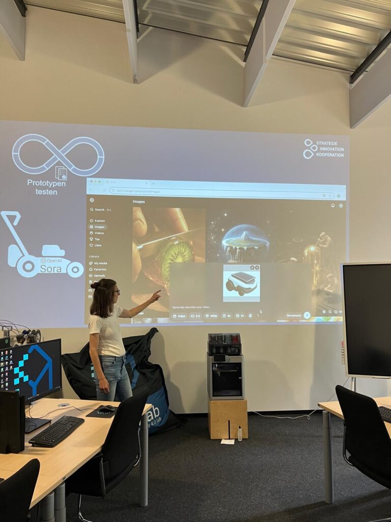 Doch damit nicht genug: Im nächsten Schritt wurde gezeigt, wie Künstliche Intelligenz (KI) den Innovationsprozess sinnvoll unterstützt – als digitaler Sparringspartner in der Ideenentwicklung. Dabei blieb es nicht bei der Theorie: Die Schüler*innen konnten selbst kreativ werden, verschiedene KI-Tools testen und herausfinden, wie Mensch und Maschine gemeinsam Neues schaffen.