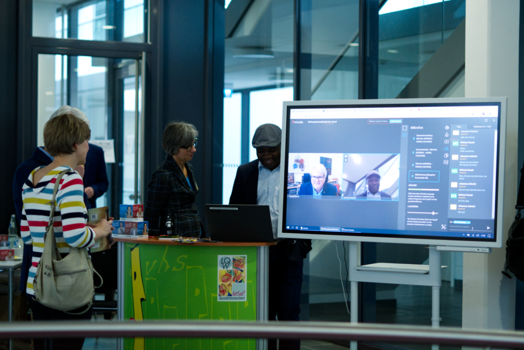 Begleitend zur Mittagspause konnten die Gäste auf einem Bildungsbasar spannende Angebote der TU Kaiserslautern, der Hochschule Kaiserslautern und regionaler Partner entdecken. Vom Einsatz eines Alzheimerkoffers bis hin zur Digitalisierung in den Volkshochschulen gab es hier viele Informationen und reichlich Inspiration.