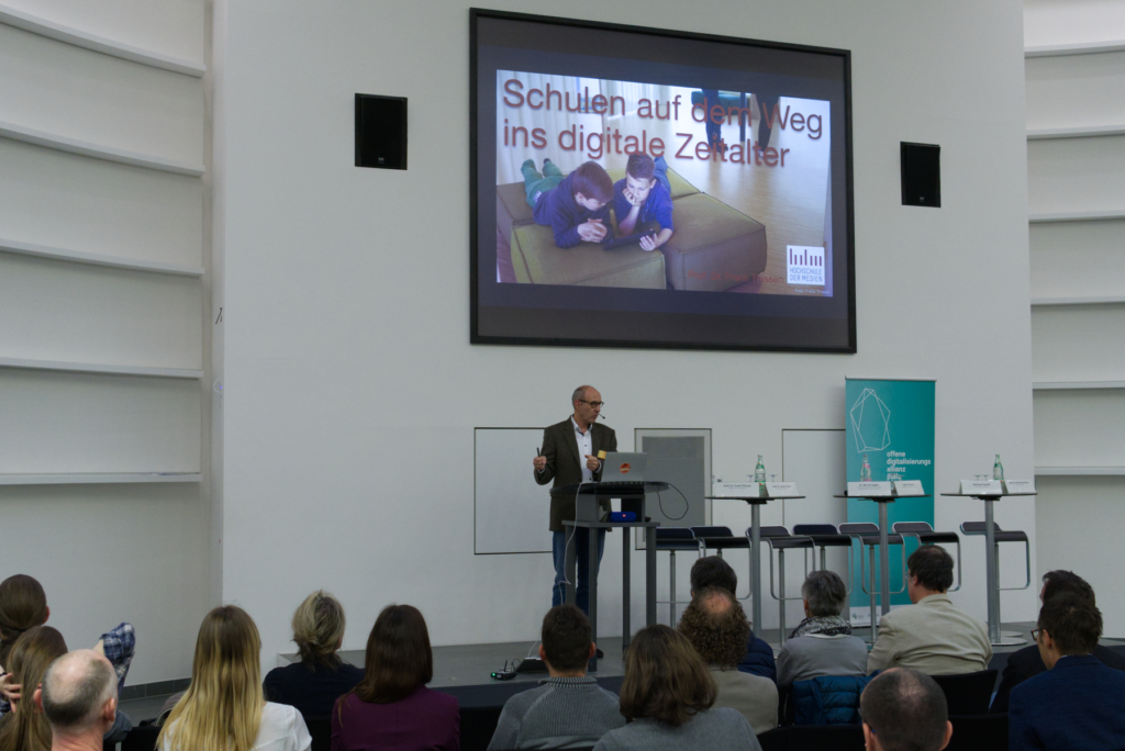 Prof. Dr. Frank Thissen präsentierte in seiner Keynote „Schulen auf dem Weg ins digitale Zeitalter“ am Nachmittag dann motivierende Praxisbeispiele aus anderen Bildungseinrichtungen.