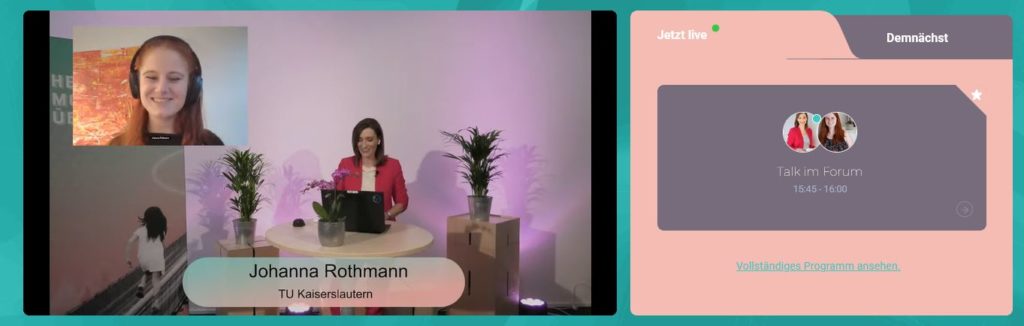 Im Talk mit Moderatorin Daniela Bublitz hob Nadine Wermke, Koordinatorin der Offenen Digitalisierungsallianz Pfalz an der TUK, eine zentrale Botschaft der Konferenz hervor: „Die Türen der Universität stehen offen.“ Prof. Dr. Werner Thiel, Vizepräsident für Forschung und Technologie der TUK und Projektleiter der Offenen Digitalisierungsallianz Pfalz, lud ebenfalls ein zum Dialog und zu Kooperationen: „Wir bringen zukunftsgerichtet Ideen aus der Pfalz in die Welt. Und wir holen Ideen aus der Welt in die Pfalz. Reden Sie mit und kommen Sie auch nach der Konferenz gerne auf uns zu!“